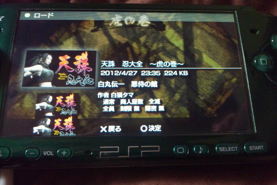 白猫タマさん『白丸伝一 悪侍の館』プレイ後記 虎の巻界に新たな製作者様が誕生なされました。その名は、白猫タマさん。はい、若干前置きが大仰になりました。プレイした『白丸伝 プロローグ編』の公開ページはこちらです。プロローグ編との標題どおり、この任務にはまだまだシリーズ的な発展が予定されているようです。この記事には、任務についてのネタバレが一切の遠慮なく含まれているので、未プレイの方はご注意を。大丈夫な方は続きへお進みください。 『白丸伝一 悪侍の館』演出面:主人公の白丸。どうやらズッコケタイプの忍者のようです。でも決めるときは決める、みたいな感じでしょうか。対戦演出では、敵の大将、完全にペースに乗せられてしまっています。これが天然ボケだったら恐ろしい子。変化術の使い手、それも能力までコピーしてしまうという設定。仮面ライダーで言えばディケイドみたいなもの?w悪侍たちは、生粋の悪党どもでしたが、今回の演出では黒幕などの背後関係は語られませんでしたね。果たしてあいつらはただの悪党だったのか。任務面:今回の雰囲気は商人屋敷。目的は全滅。地形はオーソドックスな屋敷と思いきや、結構曲者です。厄介な所に偽床が点在しており、一度目のプレイではこの初見殺しのトラップに見事に引っかかって任務失敗となりました。また、偽床の下に敵がいる場合もあり、その場合は見落とさないよう注意しなければなりません。その他、行き止まりがあったり目立たない二階があったりと、思っていた以上に行ったり来たりが必要になりました。初クリアまでの軌跡一回目…外周、MAP北東部の偽床に嵌り死亡 ↓二回目…初クリア PR
